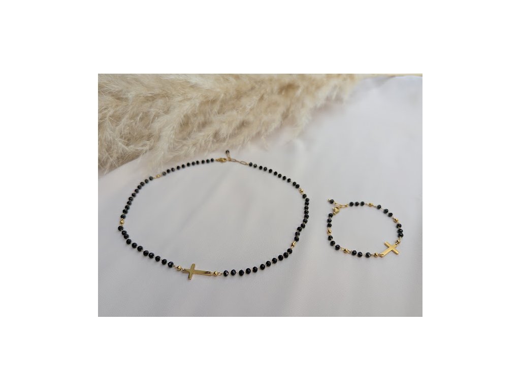 Choker je vyrobený z broušeného spinelu o velikosti cca 3mm a z doplňků z pozlacené šperkařské oceli. Choker je dostupný i ve stříbrné oceli. Ocel nečerná. Na zapínání je přidán prodlužovací řetízek pro nastavení velikosti.