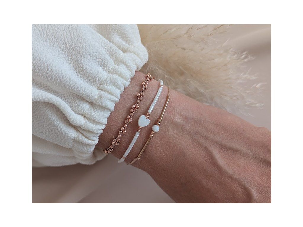 Náramek je vyroben z hedvábí. Stříbrná varianta je vyrobena z korálků ze stříbra Ag 925/1000 o velikosti 2,2 až 2,5mm. Varianty náramků v růžovém nebo žlutém zlatě jsou vyrobeny z korálků ze šperkařské oceli pozlacených růžovým nebo žlutým zlatem. Náramek má nastavitelnou velikost. Nejběžnější dámská velikost je 17cm.