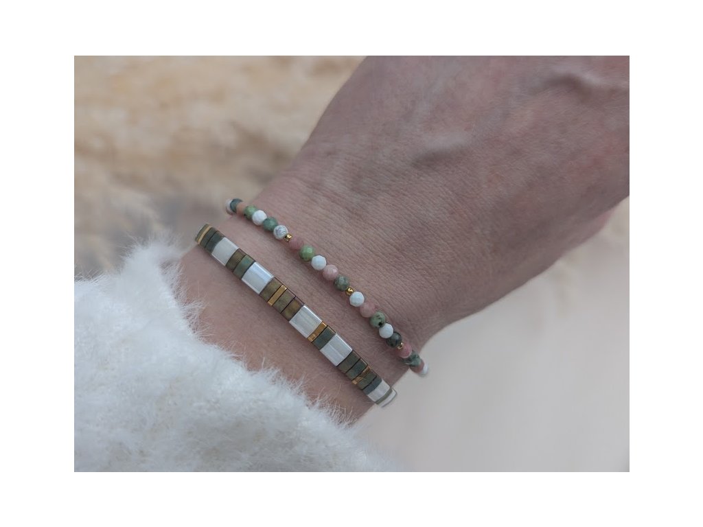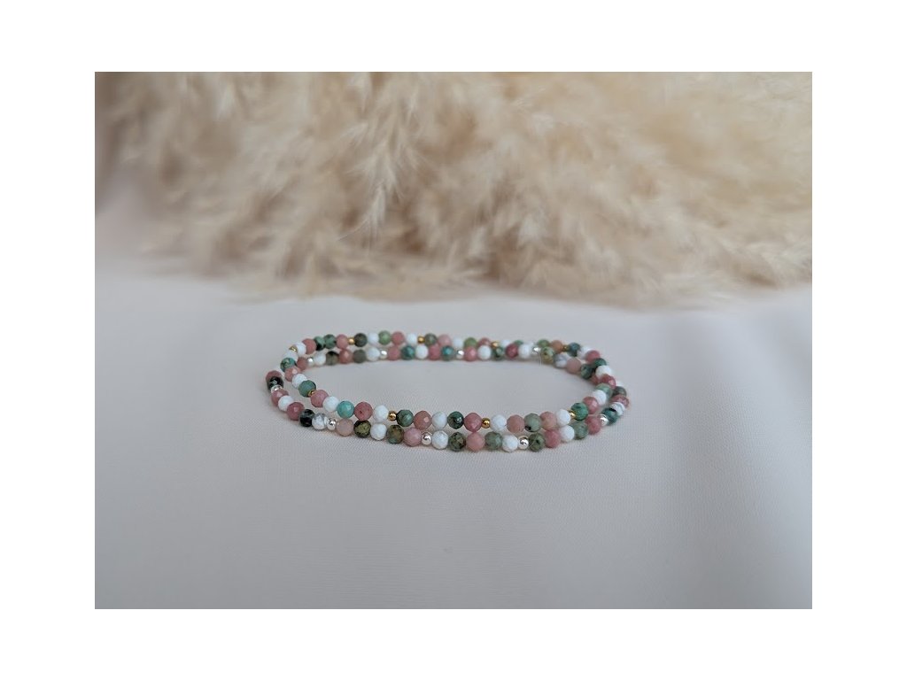 Náramek z broušeného rodochrozitu, magnezitu a afrického tyrkysu