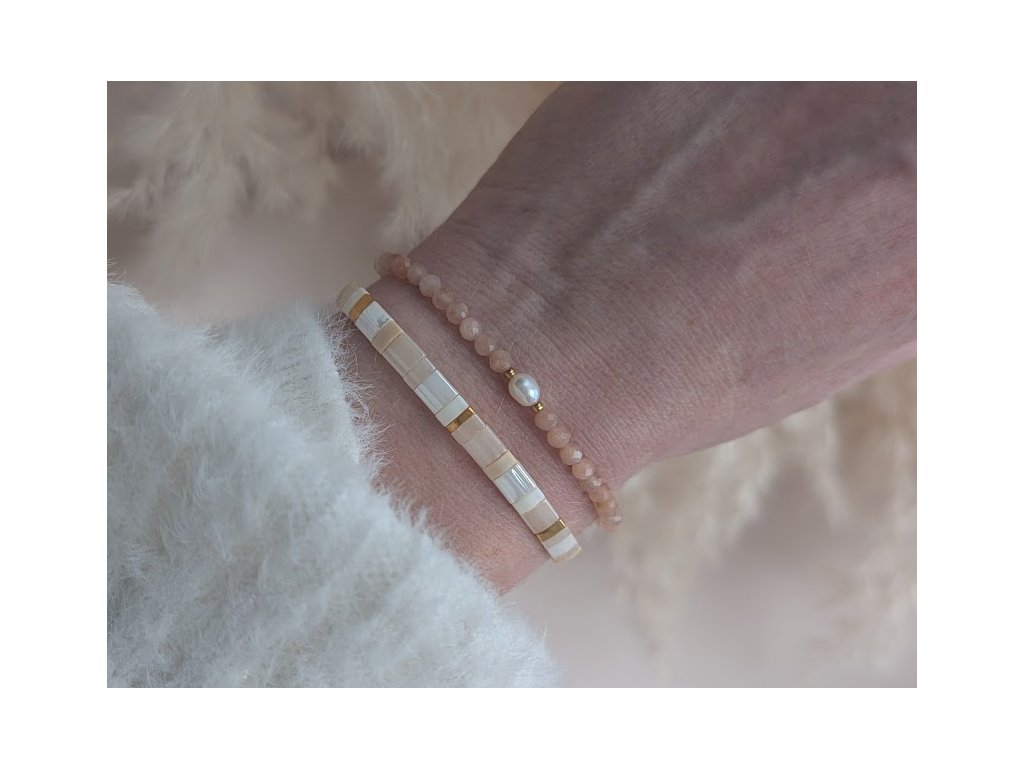 Náramky z rodochrozitu nebo slunečního kamene s říční perlou