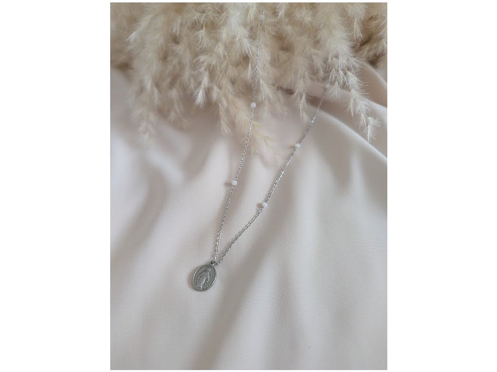 Řetízek s broušeným měsíčním kamenem a Madonkou