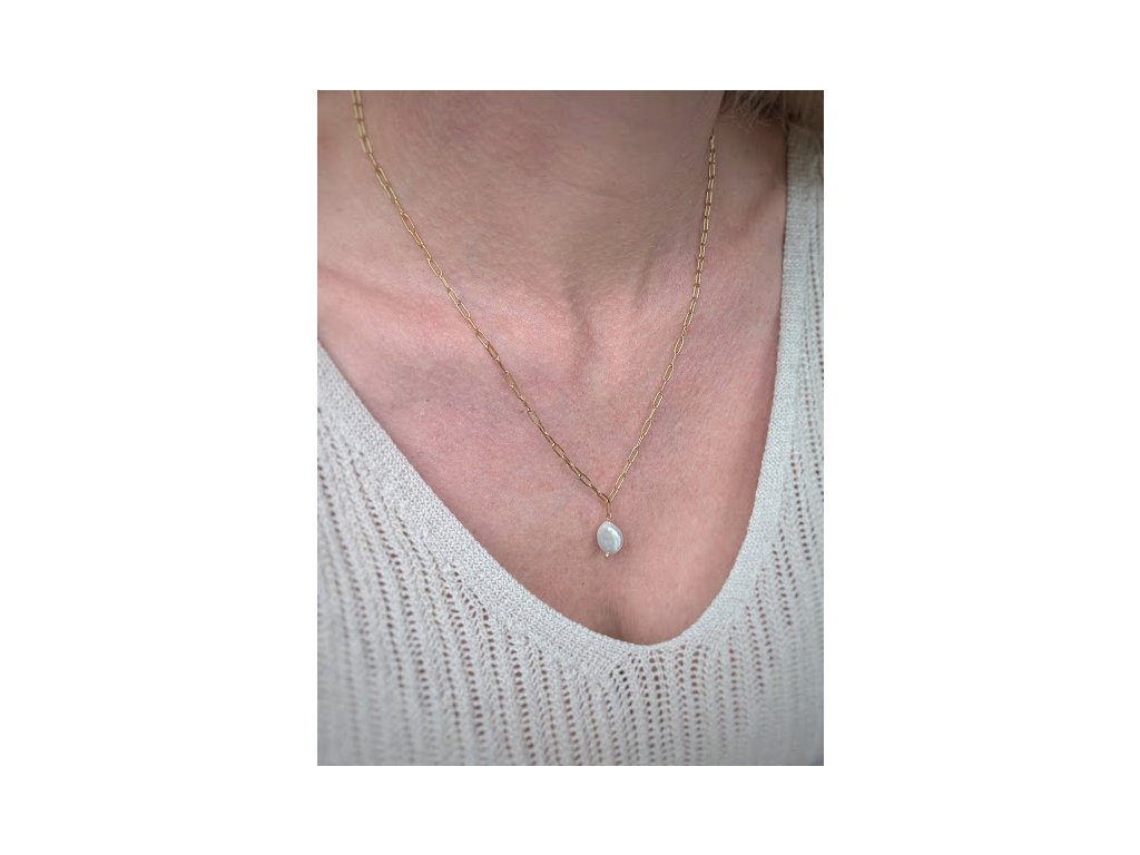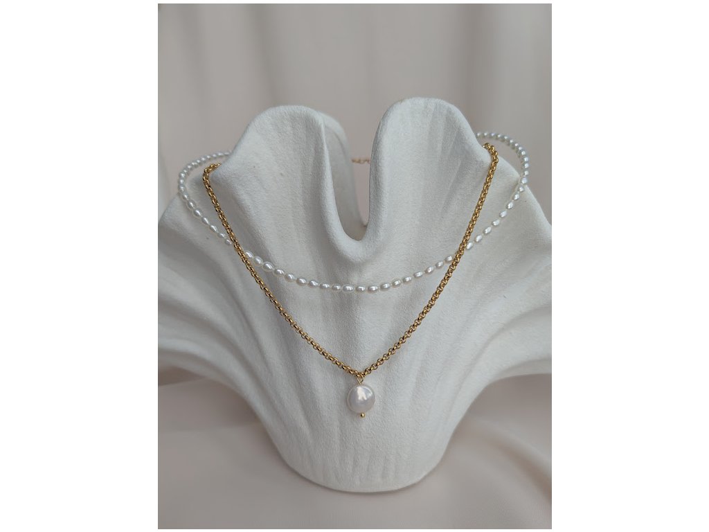 Řetízky jsou vyrobeny z pozlacené šperkařské oceli doplněné říční perlou. Dostupné jsou varianty v oceli pozlacené žlutým zlatem nebo ve stříbrné oceli.